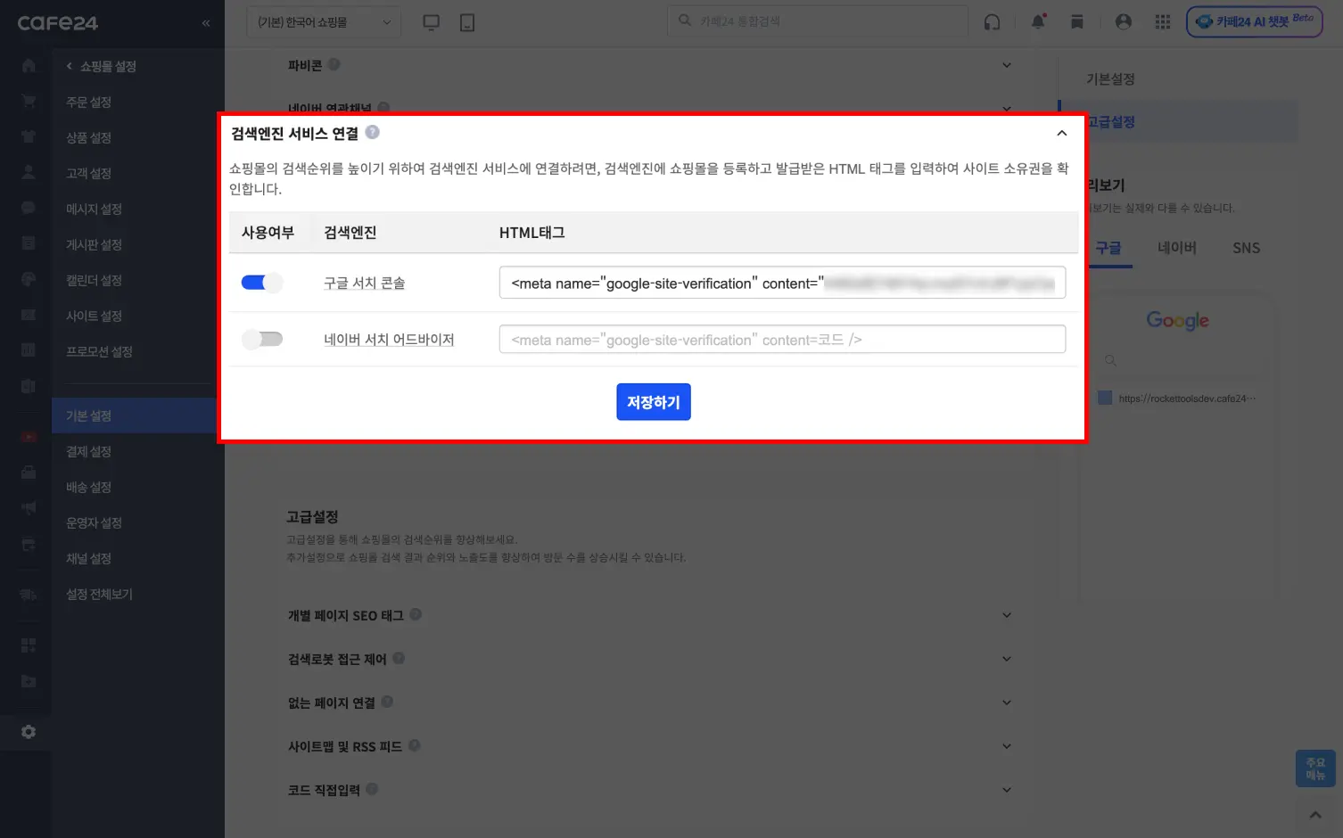 3. 카페24 구글 서치콘솔 연동하기